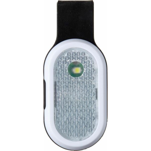 Veiligheidslamp met krachtige COB (chip on board) LED lampjes in wit en rood. Met sterke magneten, de voor en achterzijde worden verbonden door een siliconen band. Inclusief batterijen.