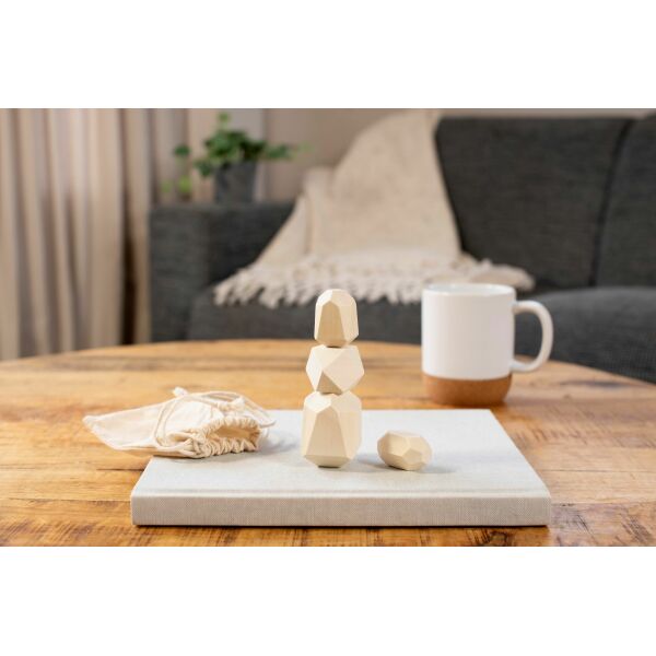 Houten behendigheidsspel met katoenen etui met trekkoord. Handleiding inbegrepen.