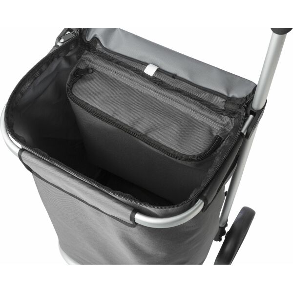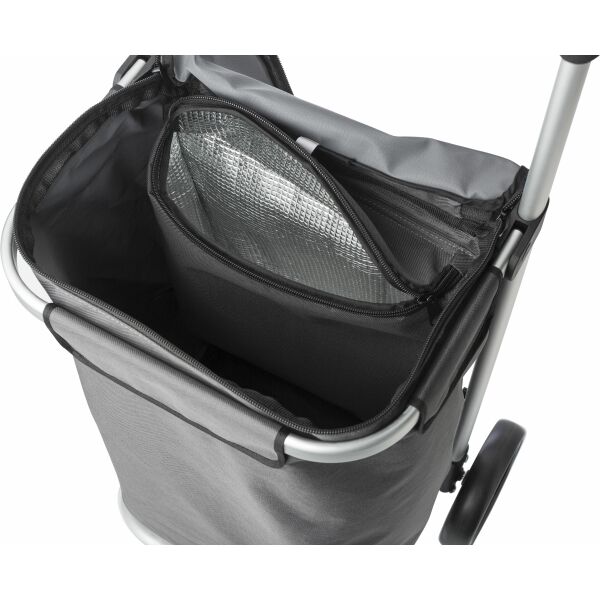 Katoenen boodschappentrolley (Oxford), inclusief een groot koelvak, een aluminium frame en een EVA schuim greep. Bij aflevering dient men de trolley in elkaar te zetten.