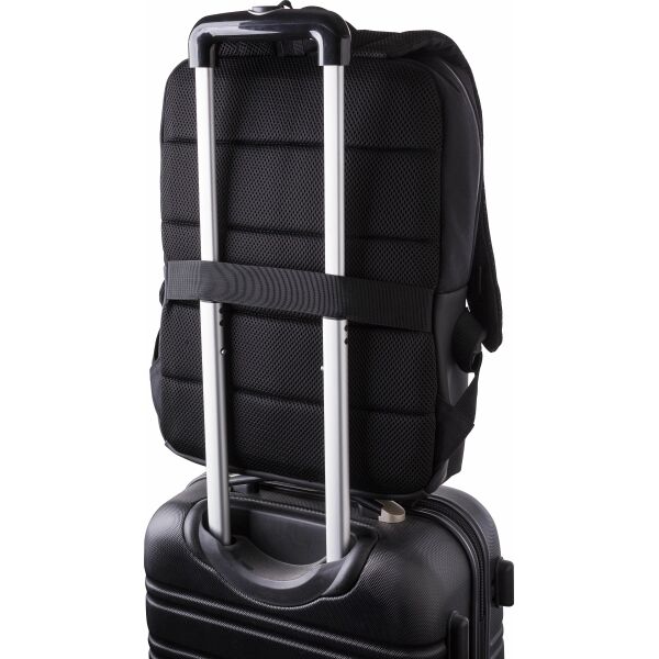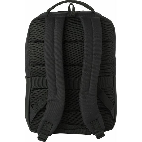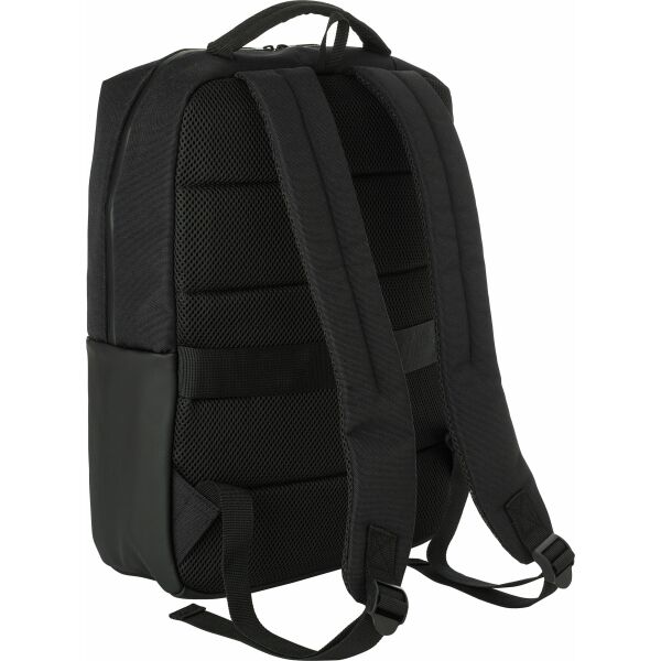Polyester (600D) laptoptas (15 inch). Eén groot vak met ritssluiting bovenaan met meerdere vakken aan de binnenkant. Klein vak met ritssluiting aan de voorkant. Versterkte achterkant en verstelbare banden.