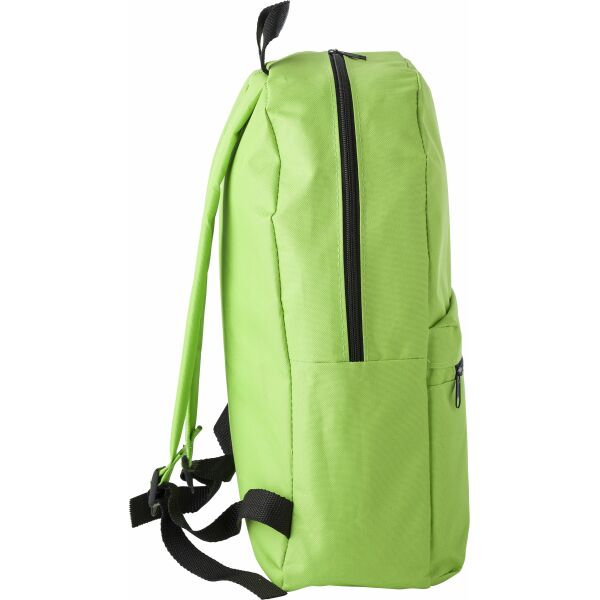 Polyester (600D) rugzak met ritssluiting op het hoofdvak en voorvak. De tas heeft verstelbare, gewatteerde schouderbanden.