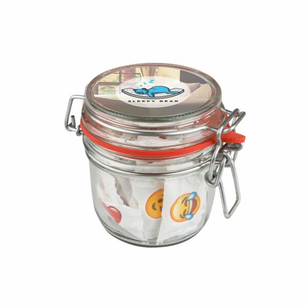Een laag epoxyhars wordt op zelfklevende labels aangebracht welke al bedrukt en gesneden zijn. De laag is glashelder en laat dus duidelijk de bedrukking eronder zien. Ook is er een extra dimensie zichtbaar (3D-effect) door de harslaag en zorgt het voor bescherming van de bedrukking.